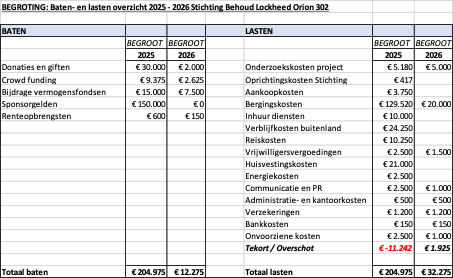 [1] Een meer gedetailleerd financieel overzicht is op te vragen bij de secretaris van de stichting (secretaris@orion302.nl)